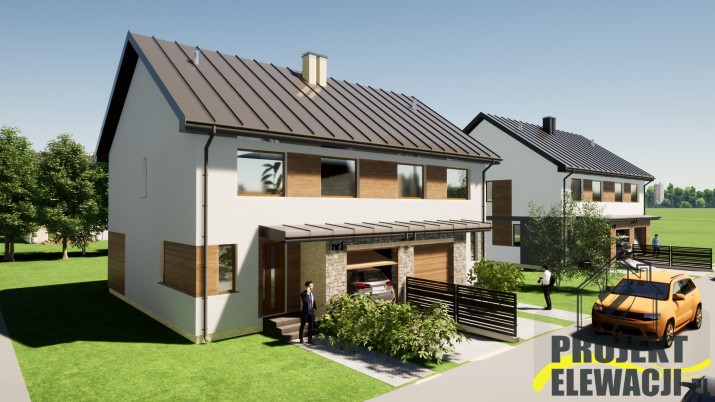 Wizualizacja elewacji bliźniaka Wizualizacja elewacji bliźniaka w odcieniach szarości Projekt…